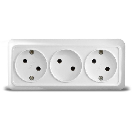 Розетка Олимп 3-местная без заземления, открытой установки, белая (линейная)