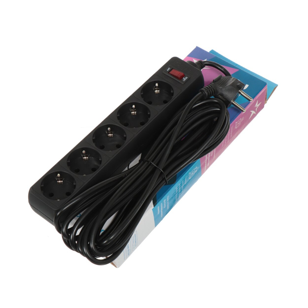 Сетевой фильтр Космос 5 гнезд 3 м с заземлением с выключателем, черный