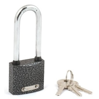 Висячий замок имеет чугунный корпус с порошковым антикоррозийным покрытием и удлиненной закаленной стальной дужкой. Места стыка дужки и замка защищены от попадания воды резиновыми кольцами.
