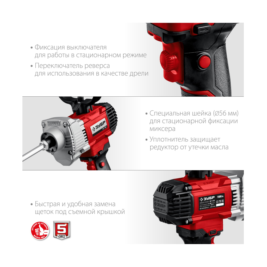 Универсальный миксер для эффективного перемешивания любых растворов, вплоть до тяжелых с включением крупных фракций. Двухступенчатый редуктор обеспечивает большой крутящий момент. Электронная регулировка оборотов и широкий выбор сменных насадок помогает одинакого хорошо работать с различными материалами.