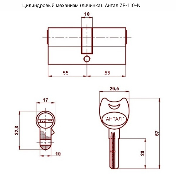 Цилиндровый механизм (личинка) Антал ZP-110-N ключ/ключ,хром