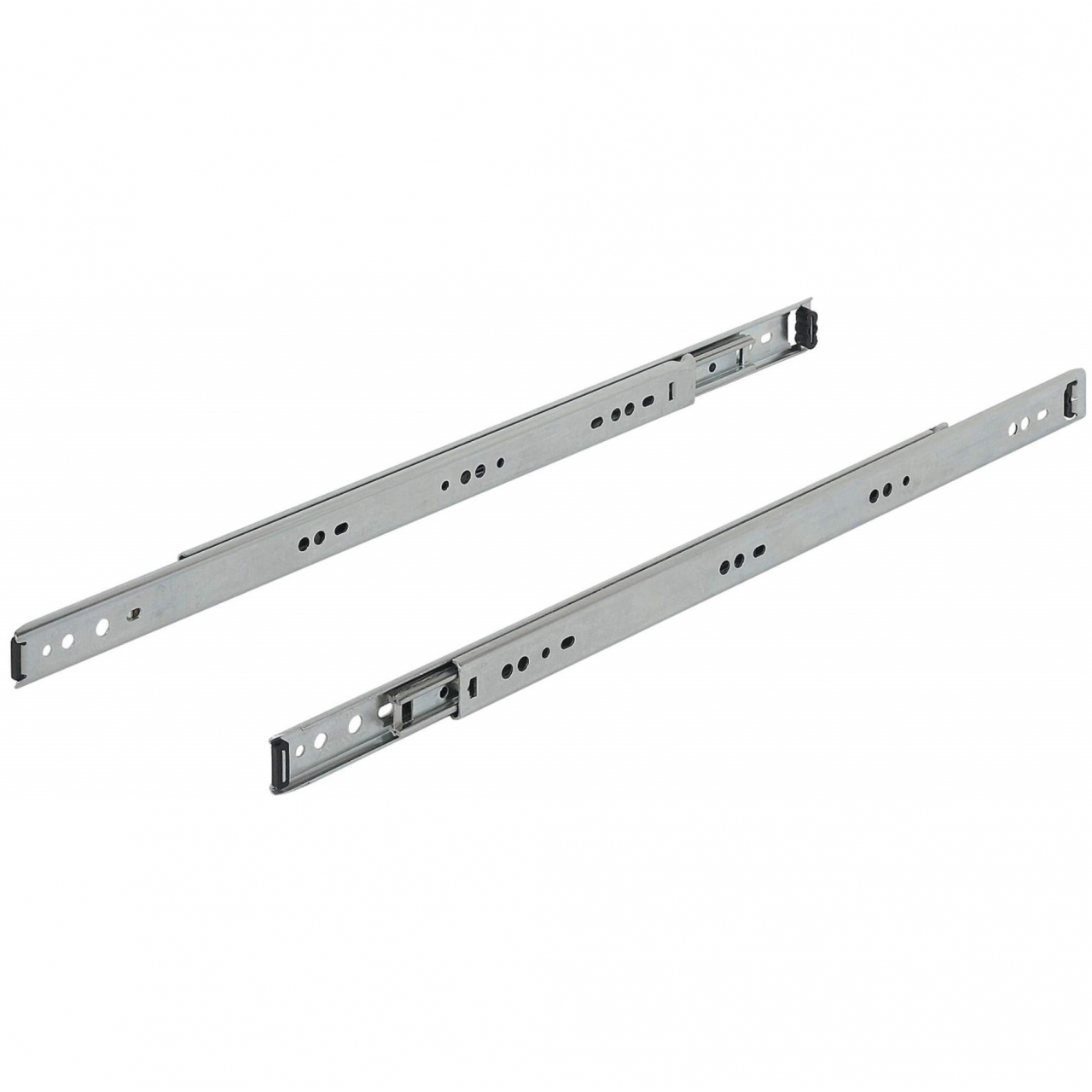 Шариковая направляющая предназначена для комплектации отсеков мебели. Телескопический механизм позволяет выдвигать ящик на всю длину, но не допускает его опрокидывания.