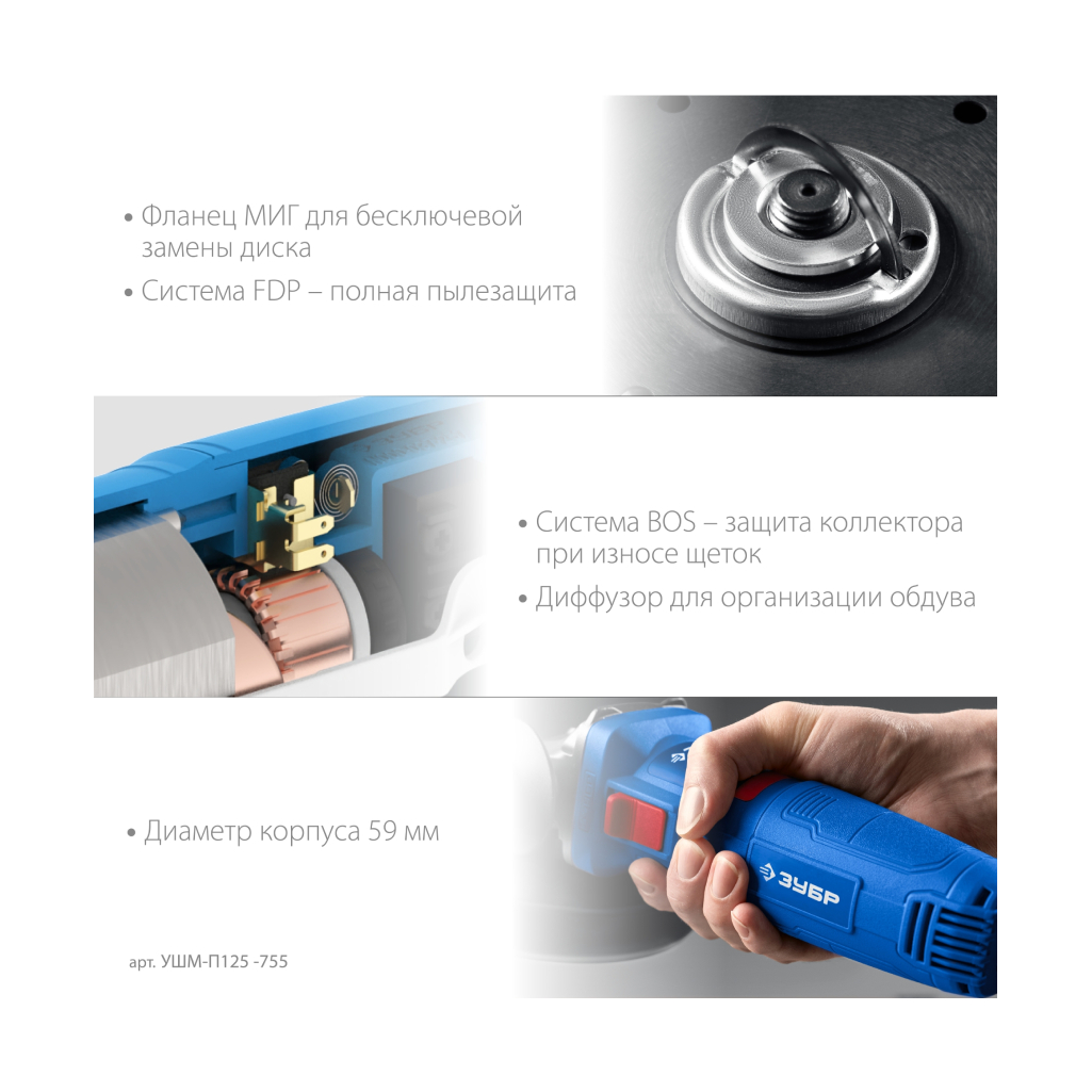 Угловая шлифовальная машина (УШМ) Зубр Профессионал УШМ-П125-755