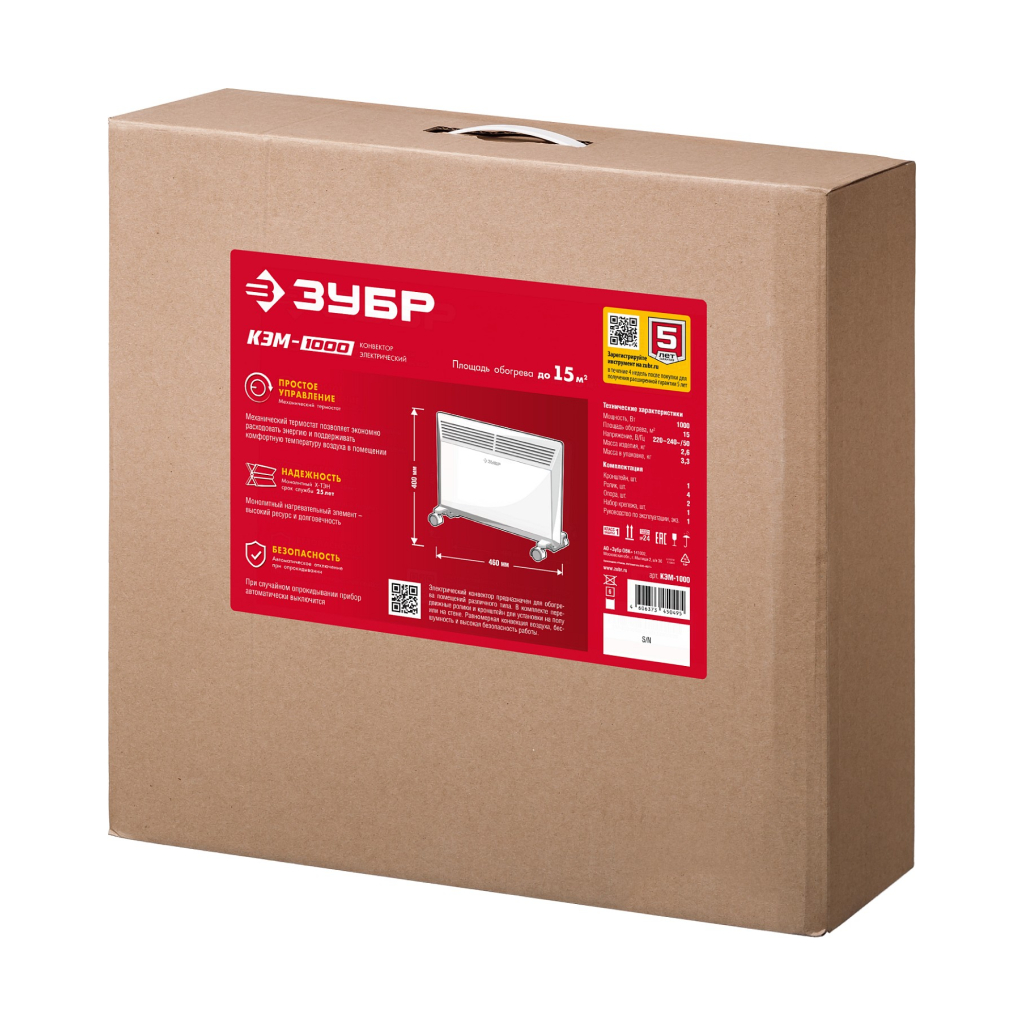 Электрический конвектор ЗУБР мощностью 1000 Вт - подойдет для обогрева любых домашних и офисных помещений, включая ванные комнаты, площадью до 15 м². Электрический конвектор предназначен для обогрева помещений различного типа.