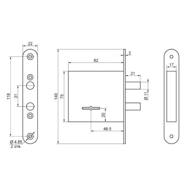 Замок врезной 76610-ЗВ8-4С/13-САМ-Мини-76610