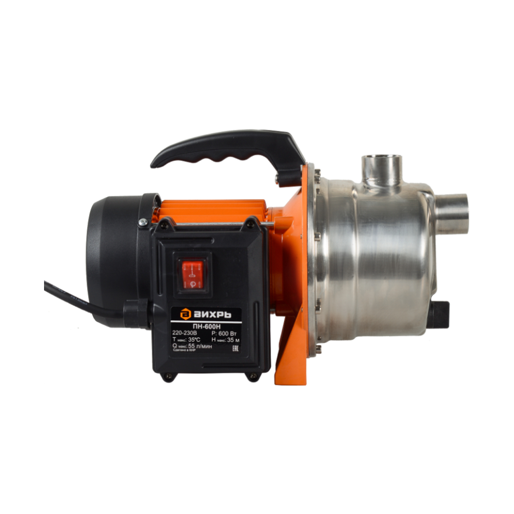 Мощность насоса 600 Вт позволяет достичь напора до 35 м и максимальной производительности 55 л/мин. Такие показатели делают его экономичным выбором для подачи воды на небольшие участки, а также для организации автономного водоснабжения небольшого частного дома или дачи.