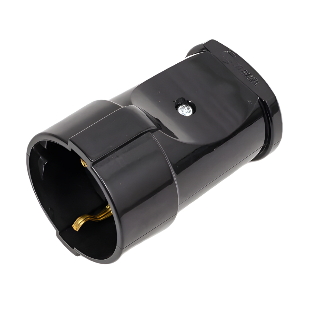 Штепсель с заземлением, черный Makel 10053 изготовлен из качественного ударопрочного пластика черного цвета. Изделие служит для подключения бытовых электроприборов к сети. Предусмотрено заземление и одно гнездо для подключения. Работает при номинальном токе в 16 А.
