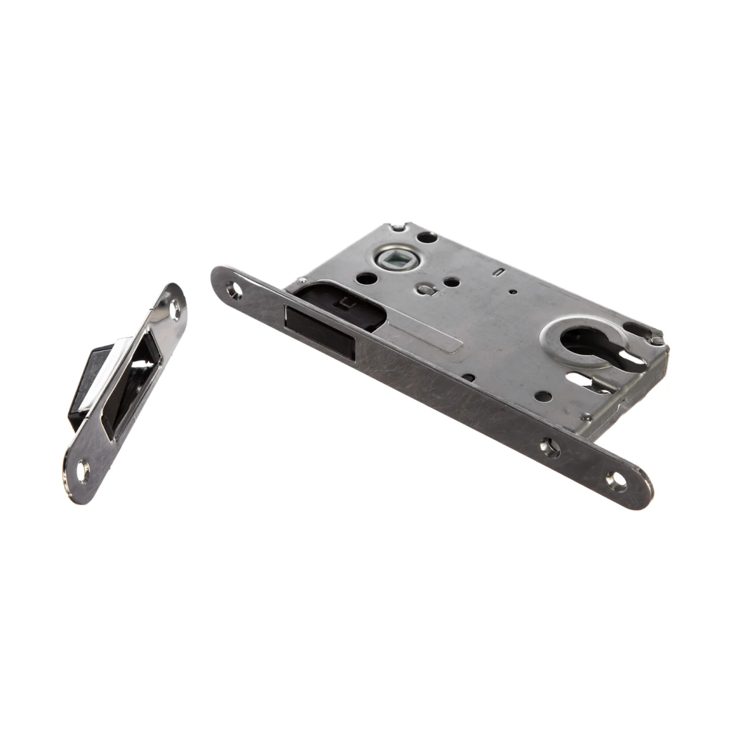Врезной магнитный замок APECS 5300-M-CR - полноразмерная защёлка для деревянных межкомнатных дверей с бесшумным магнитным ригелем. Превосходное качество покрытия, точность изготовления деталей, точность сборки, и современная конструкция дают высочайшие показатели работоспособности, превышающие самые высокие требования ГОСТ. Ригель, расположенный верхней части корпуса, закрывая дверь, примагничивается к ответной планке. Защелка универсальная: подходит и на правые, и на левые двери. Межосевое расстояние евростандарта 85 мм.