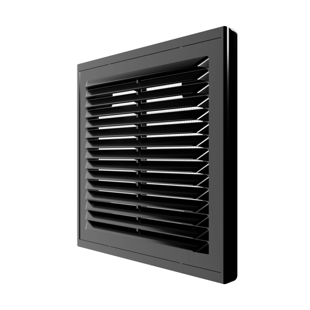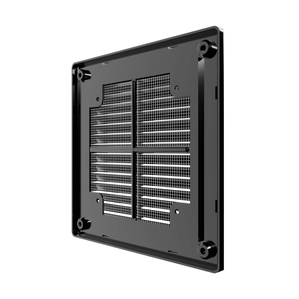 Решетка вентиляционная пластиковая 150х150 мм с сеткой, черная (1515Р black)