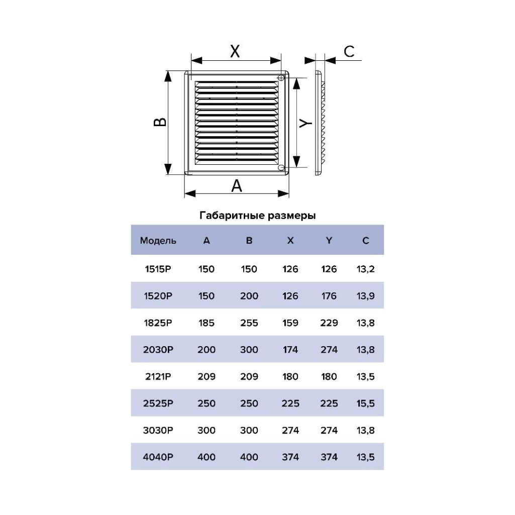 Вентиляционная решетка Р состоит из двух частей: рамки и решетки с жалюзи. Решетка не крепится непосредственно к стене или к потолку, а вставляется в рамку, которая монтируется на поверхности. Это позволяет легко снимать изделие для обслуживания: необходимо достать решетку из рамки, а затем также легко вернуть на место. Решетка оснащена наклонными жалюзи, которые помогают скрыть вентиляционный выход, а также антимоскитной сеткой для защиты от насекомых.