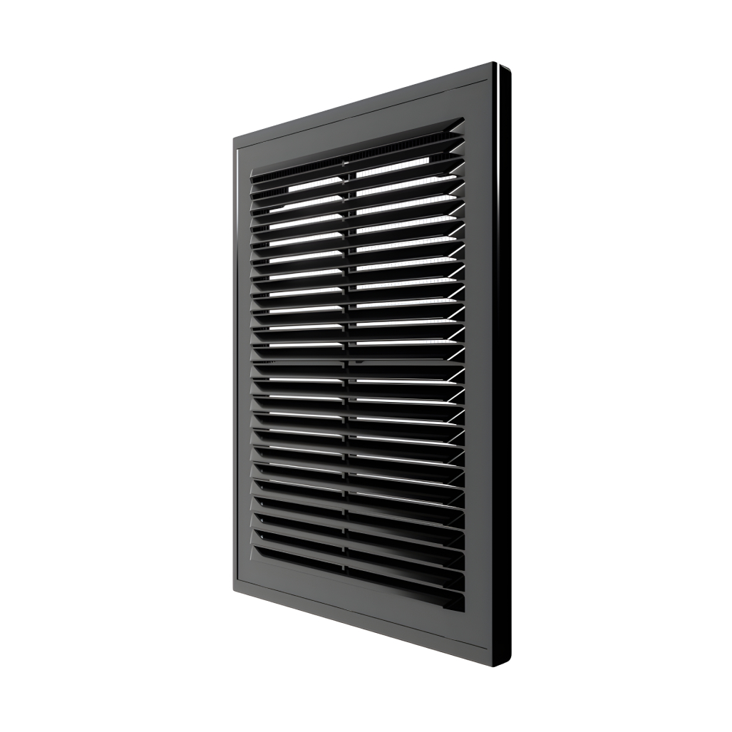 Вентиляционная решетка Р состоит из двух частей: рамки и решетки с жалюзи. Решетка не крепится непосредственно к стене или к потолку, а вставляется в рамку, которая монтируется на поверхности. Это позволяет легко снимать изделие для обслуживания: необходимо достать решетку из рамки, а затем также легко вернуть на место. Решетка оснащена наклонными жалюзи, которые помогают скрыть вентиляционный выход, а также антимоскитной сеткой для защиты от насекомых.