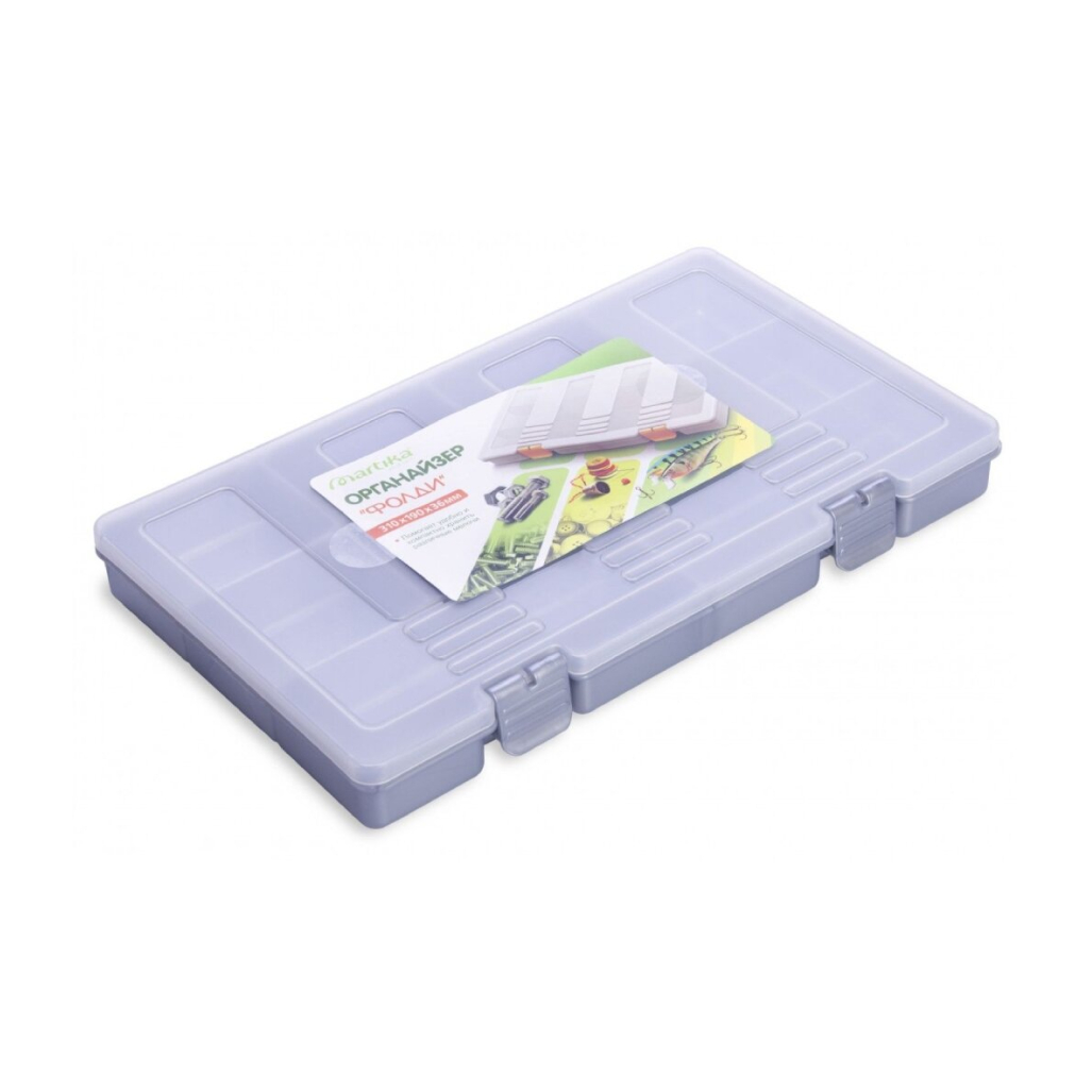Коробка для мелочей изготовлена из высококачественного пластика. Полупрозрачная крышка позволяет видеть содержимое коробки. Органайзер имеет ячейки разного размера. Коробка прекрасно подойдет для хранения швейных принадлежностей, рыболовных снастей, мелких деталей и других бытовых мелочей. Удобный и надежный замок-защелка обеспечивает надежное закрывание крышки. Коробка легко моется и чистится. Такая коробка поможет держать вещи в порядке.