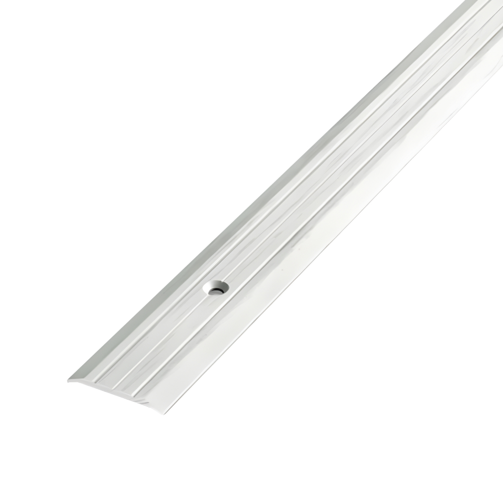 Порог закрытого монтажа, после установки профиля не видны шляпки саморезов, удобен в установке, гладкая поверхность, не подвергается окислению и имеет обширную цветовую гамму. Каждый профиль поставляется в индивидуальной упаковке, оснащенной пластиковым европодвесом, в комплекте с саморезами и дюбелями.