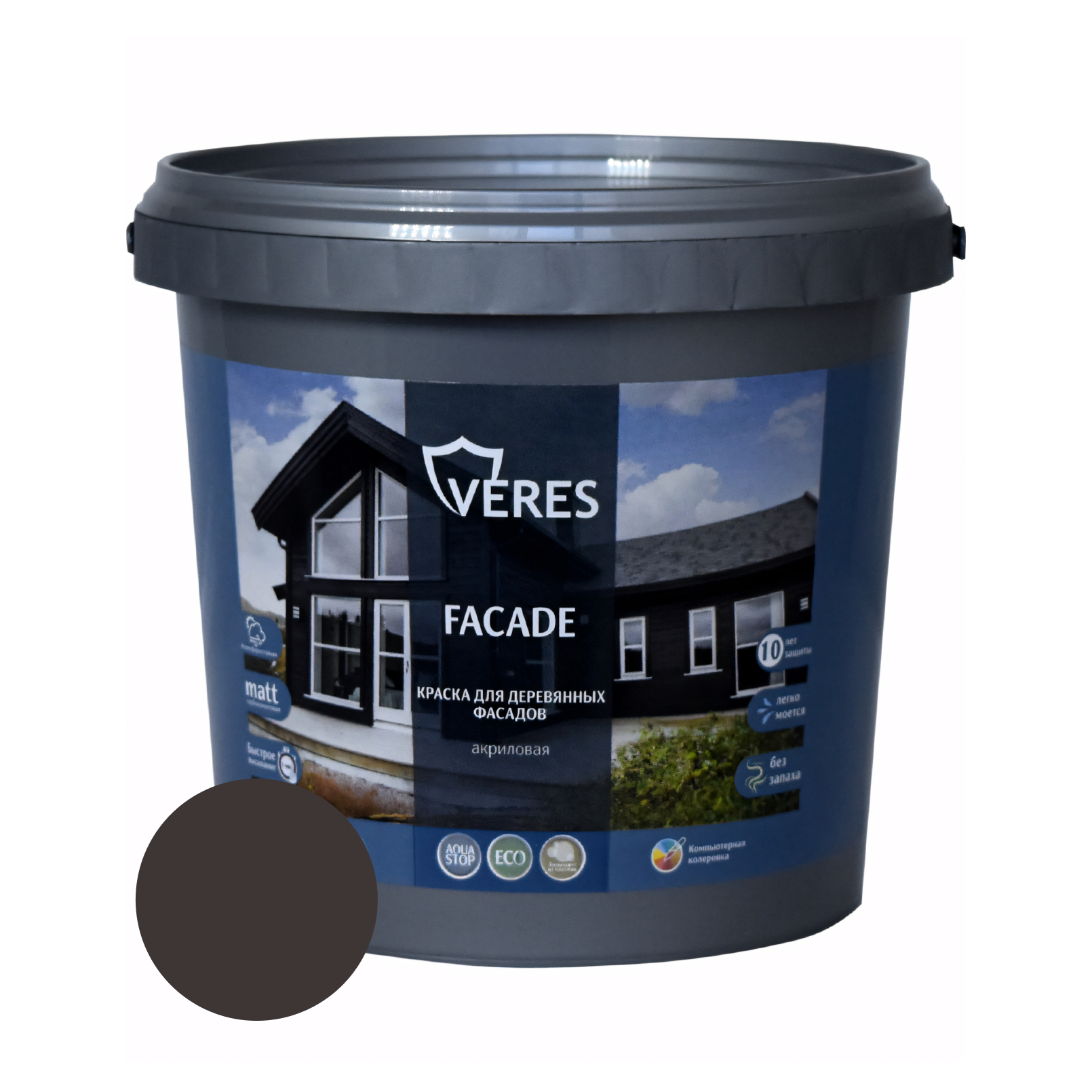 Краска Veres Facade для деревянных фасадов акриловая матовая, горький шоколад 0,9 л