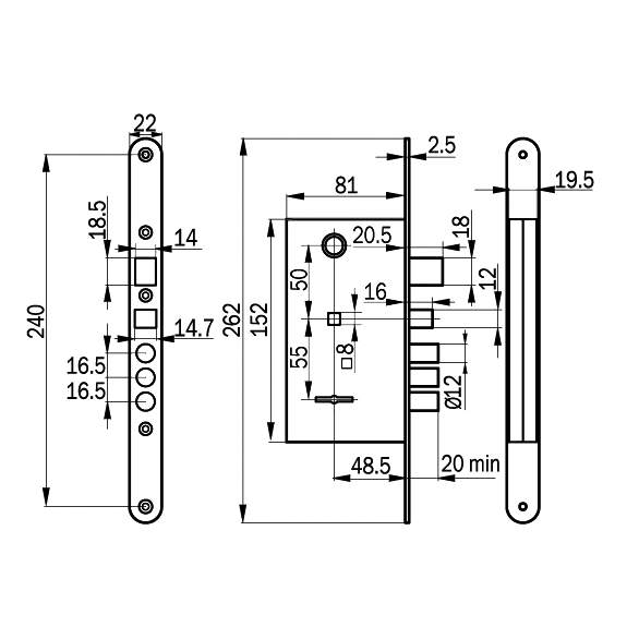 Замок врезной Просам 88010-ЗВ9-8.3/13.3П.РФ46П-002Ш