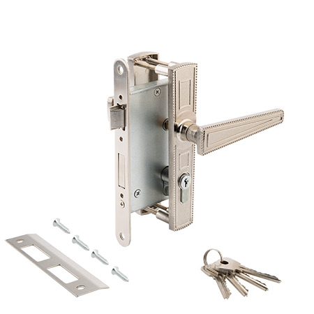 Простота монтажа: Установка замка производится методом врезки, обеспечивающим надёжное закрепление внутри полотна двери.