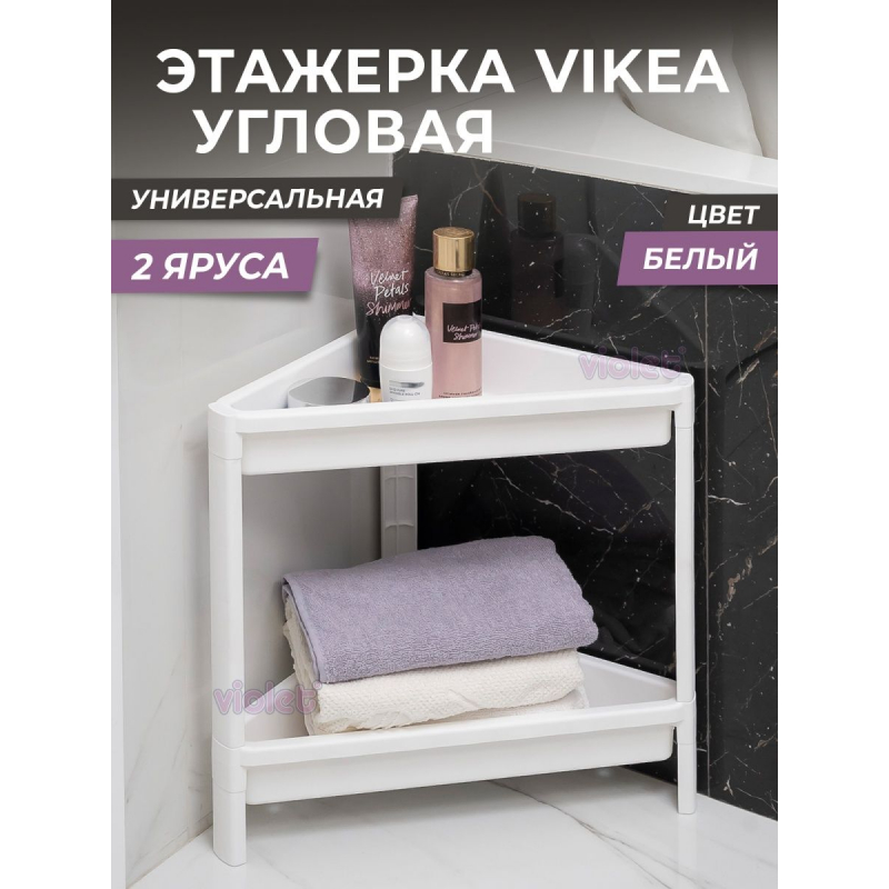 Полка для ванной VIOLET VIKEA 2-х ярусная угловая пластиковая, белая