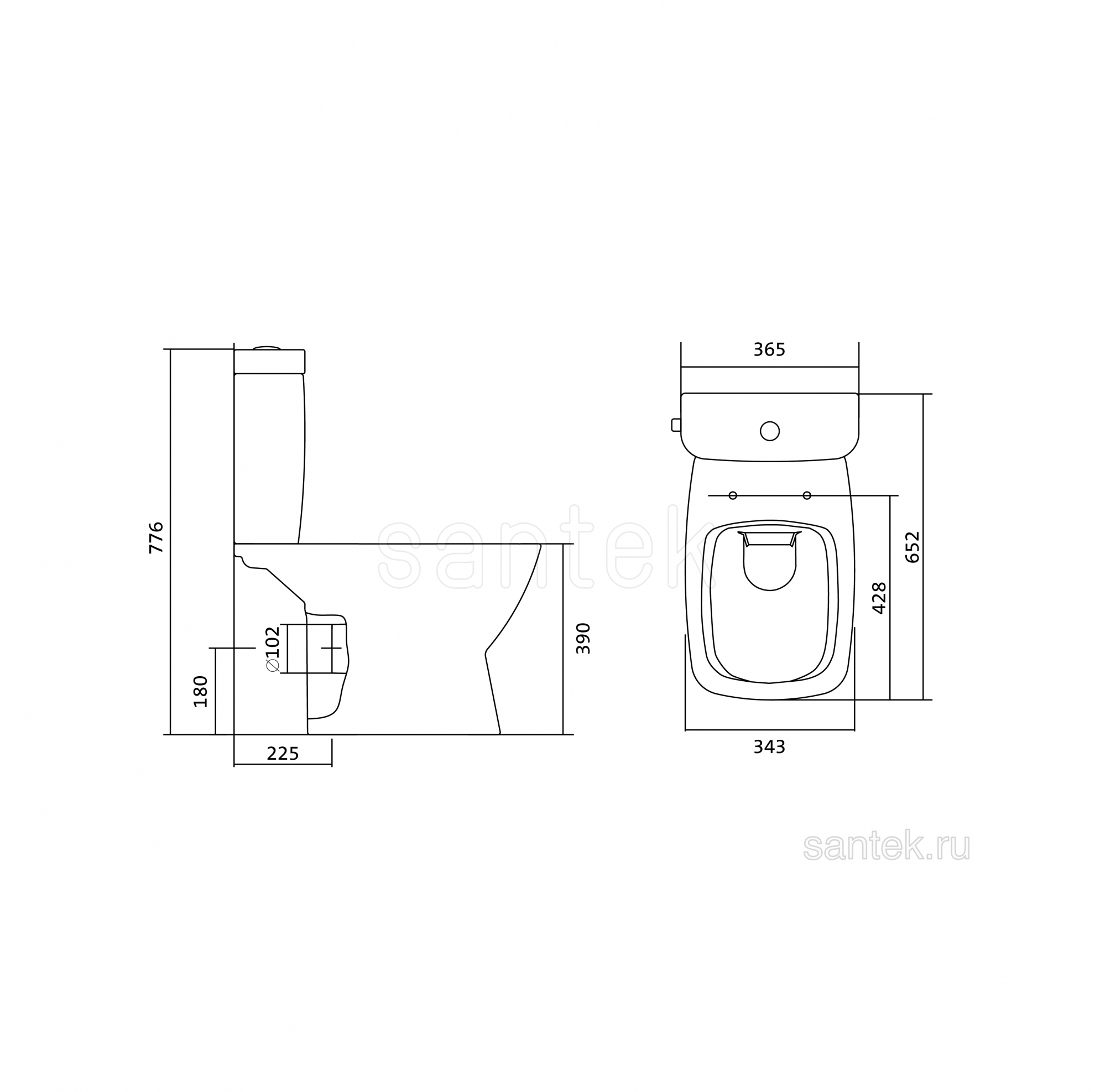 Унитаз-компакт Сантек НЕО Стандарт белый, сиденье дюропласт, микролифт, горизонтальный выпуск
