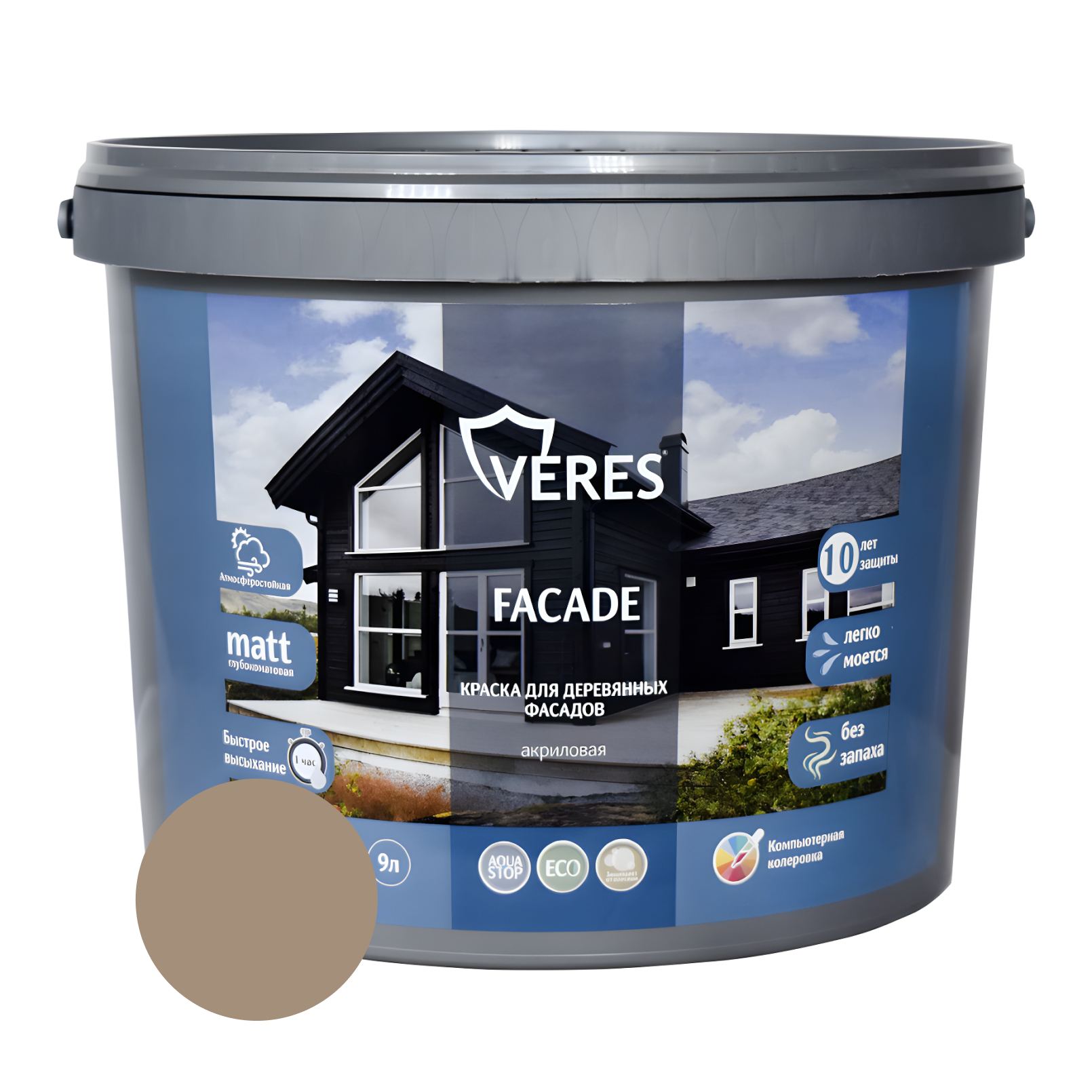 Краска Veres Facade для деревянных фасадов акриловая матовая, бежевая пудра 9,0 л