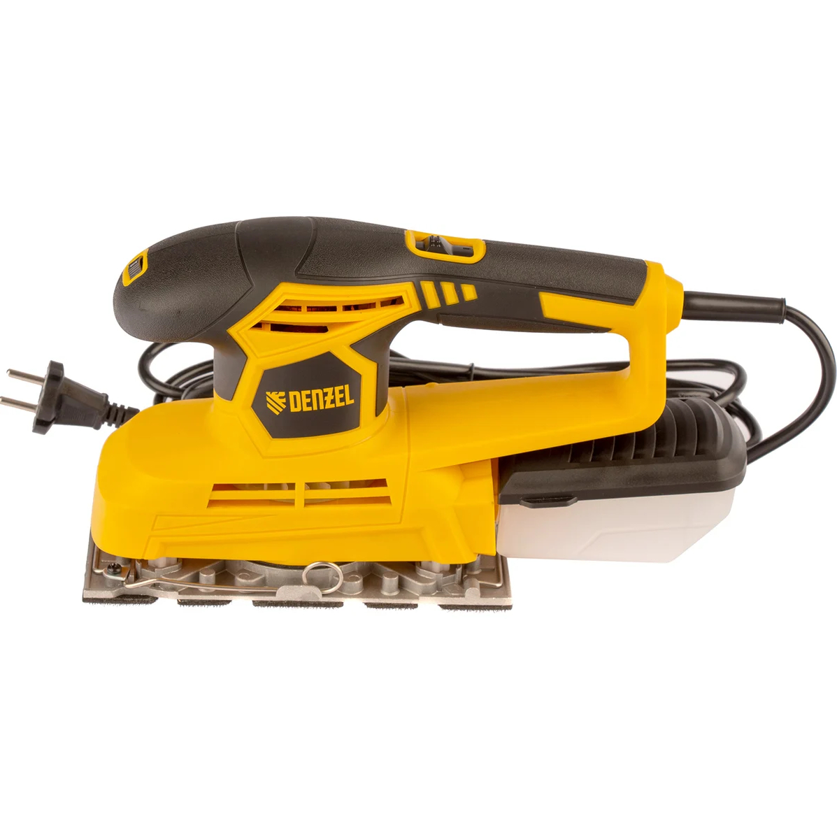 Вибрационная плоскошлифовальная машина Denzel VS-90-187 мощностью 240 Вт, с частотой колебаний подошвы 6000-11000 об/мин, подходит для сухого шлифования, зачистки и полировки поверхностей. Регулировка частоты колебаний подошвы 6000-11000 об/мин позволяет выбрать оптимальный режим работы. Размер рабочей поверхности составляет 90 х 187 мм, ход платформы — 1,6 мм, благодаря чему машина эффективно справляется с обработкой больших поверхностей.