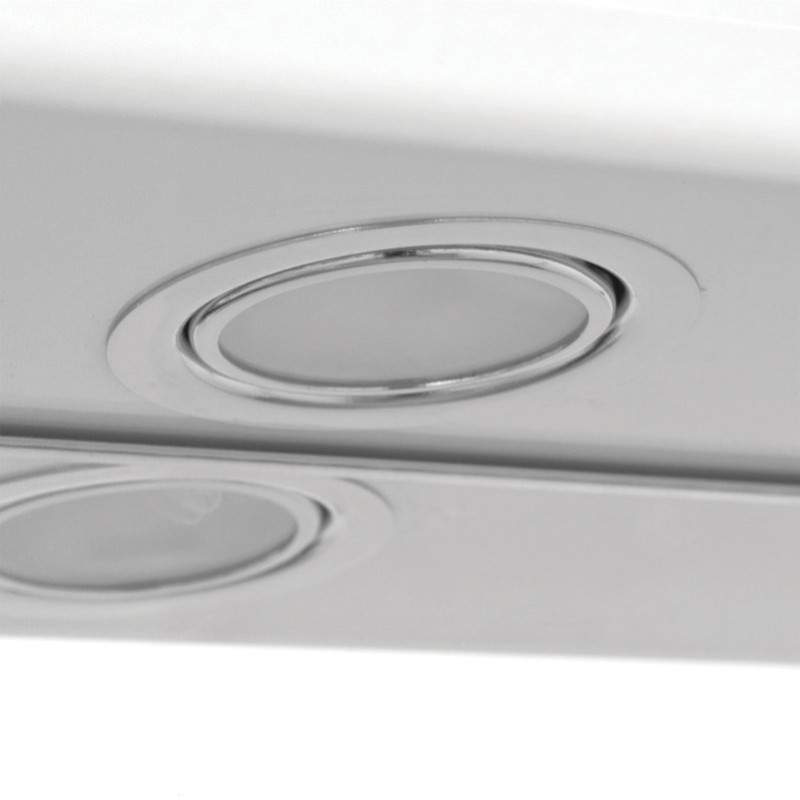 - Дополнительные элементы. Встроенная подсветка с галогеновой лампой, розетка, выключатель.
