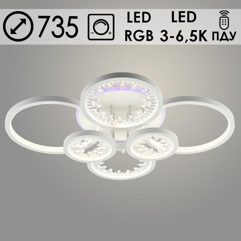 Люстра светодиодная Росток DK06060В/6 PR WH белый с ПДУ