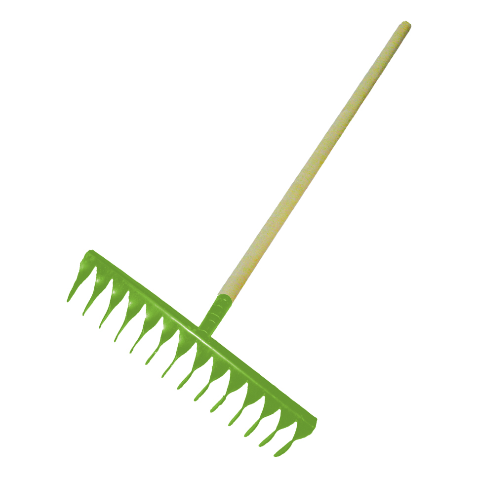 Грабли применяются для очистки поверхности почвы от скошенной травы, листьев, мусора, рыхления почвы, выравнивания грядок. Рабочая часть и тулейка выполнены из конструкционной углеродистой стали, с деревянным черенком. Покрытие порошковой краской защищает металлическую часть инструмента от коррозии.