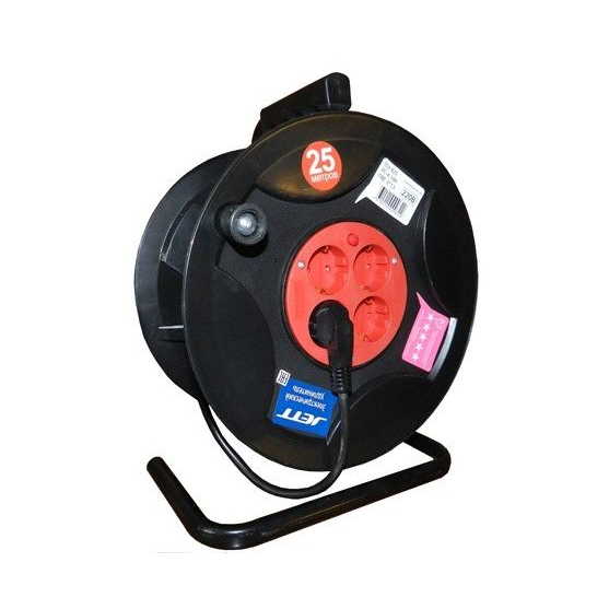 Удлинитель на катушке Jett 4 гнезда 25 м,силовой 16А ПВС 3х1,5
