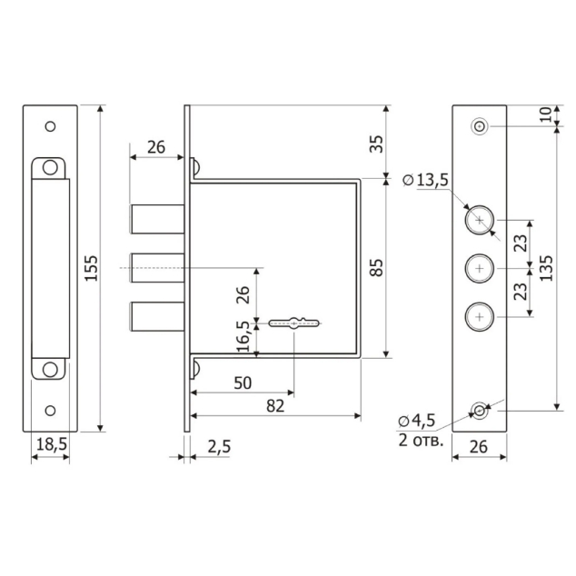 Замок врезной Гардиан 10.01 (4 ключа)