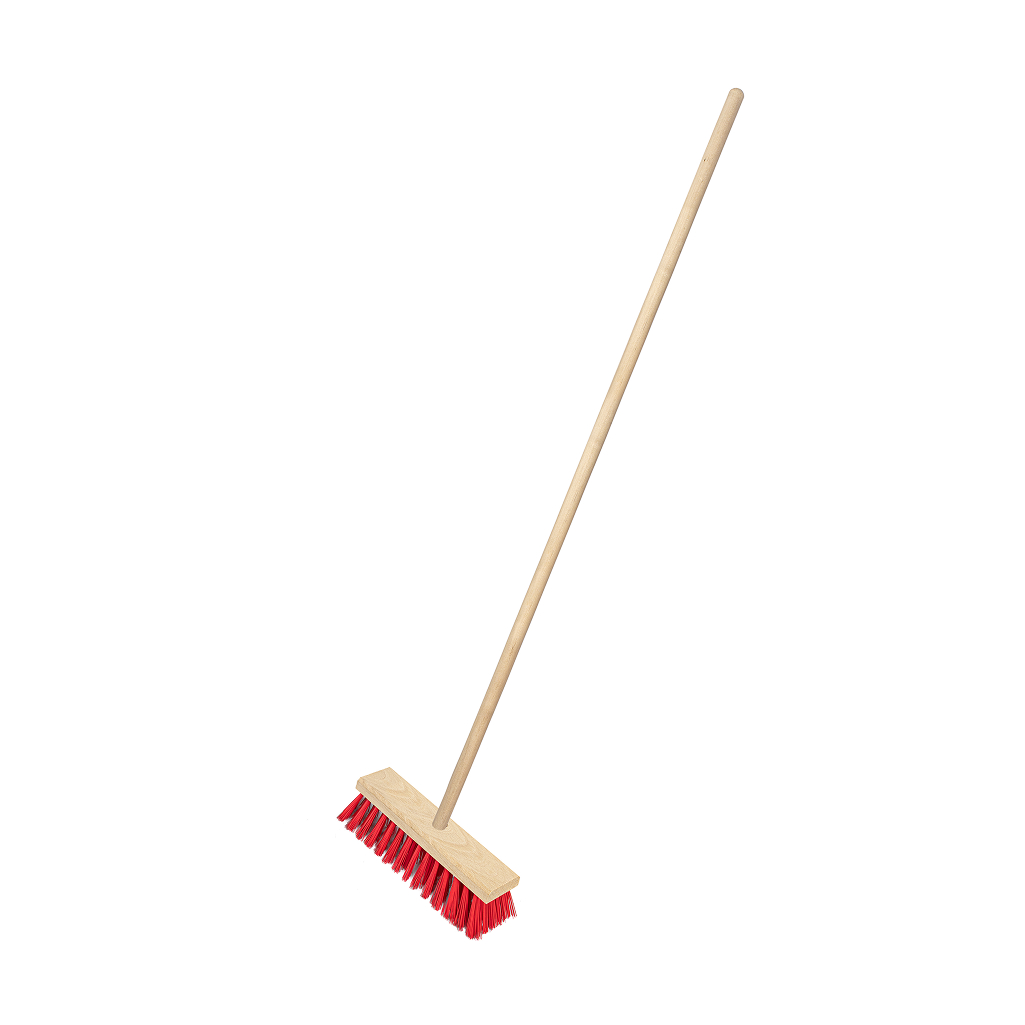 Тротуарная щетка на деревянной колодке с черенком (на резьбовом соединении) имеет жёсткую щетину и подходит для широкого спектра хозяйственных работ: для уборки улиц, дворовых территорий, подъездов и лестниц, жилых и производственных помещений. Щеткой удобно сметать мелкий мусор, счищать грязь с дорожных и напольных покрытий. Колодка сделана из высококачественного бука. В основании закреплена износостойкая синтетическая жесткая щетина, произведенная из изностойкого волокна, что обеспечивает высокую производительность работ и долгий срок службы изделия.