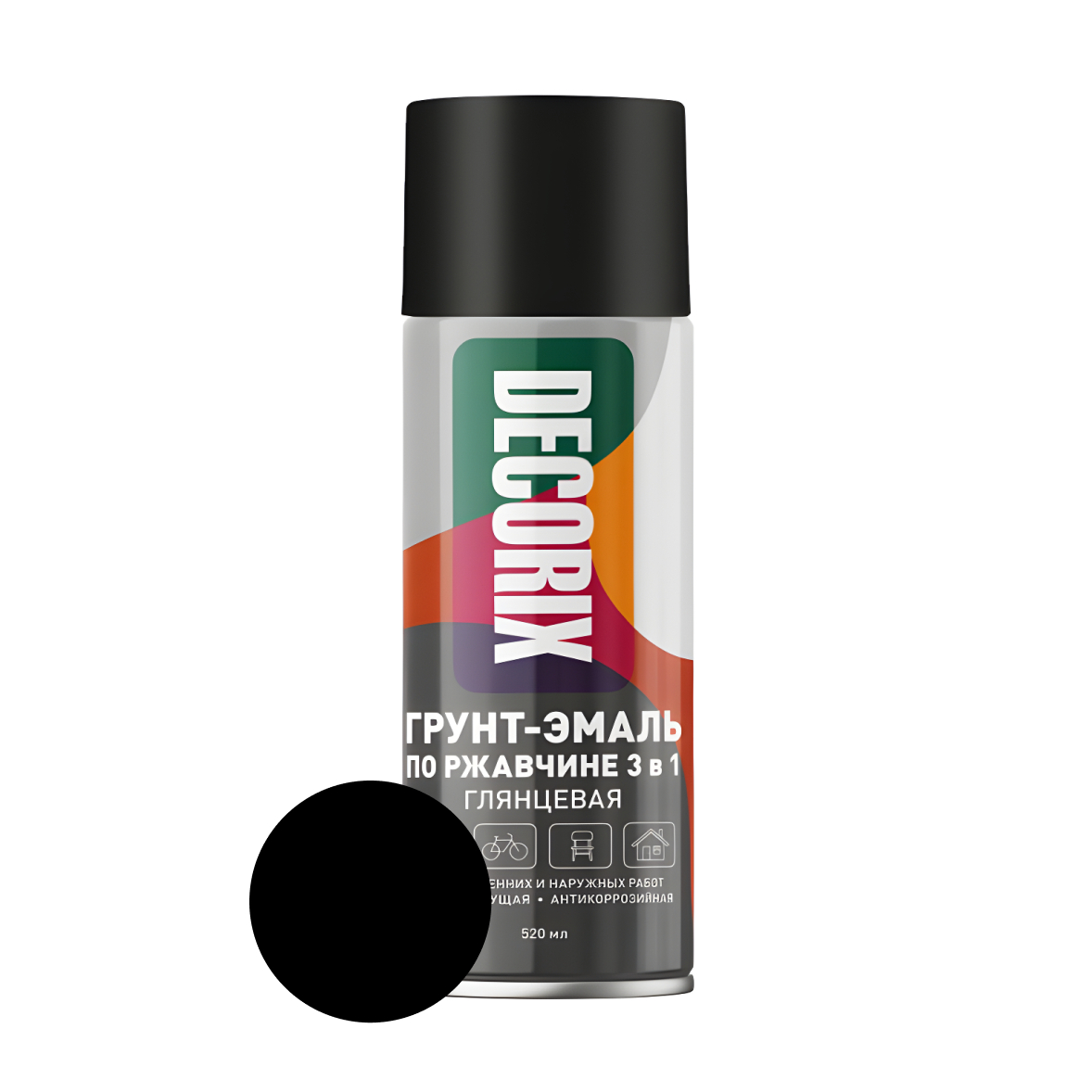 Грунт-эмаль аэрозольная Decorix по ржавчине 3 в 1 глянцевая, черная 520 мл и другие товары Вы можете купить в интернет-магазине ТД Мастер в Нижнем Новгороде по самым приятным ценам и оперативной доставкой во все регионы РФ.