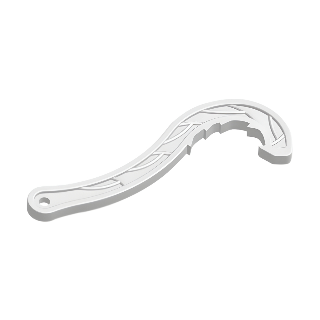 Универсальный ключ для монтажа компрессионных фитингов упрощает процесс монтажа за счет плотного обхвата гайки. Хватит небольшого усилия, чтобы затянуть или ослабить крепеж. Работа с ключом предотвращает срыв резьбы. Выемка не скользит по поверхности соединительного элемента, гарантирует надежность системы водоснабжения.