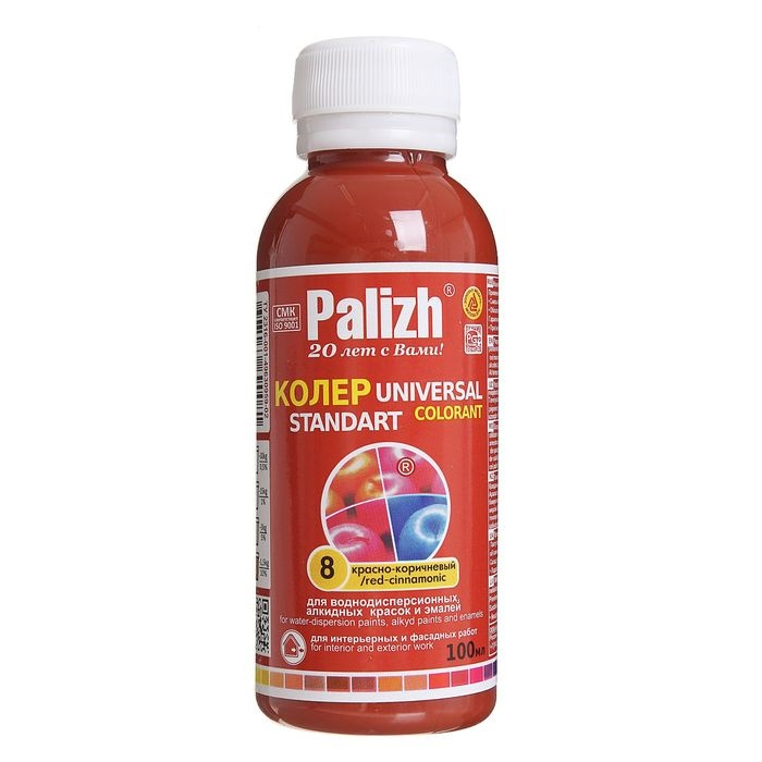 Колеровочная паста №08 Palizh Красно-коричневый (100 мл) предназначена для колерования красок, эмалей, лаков, лазурей для дерева, штукатурок и затирок на водно-дисперсионной и на органической основах, побелочных и других составов.