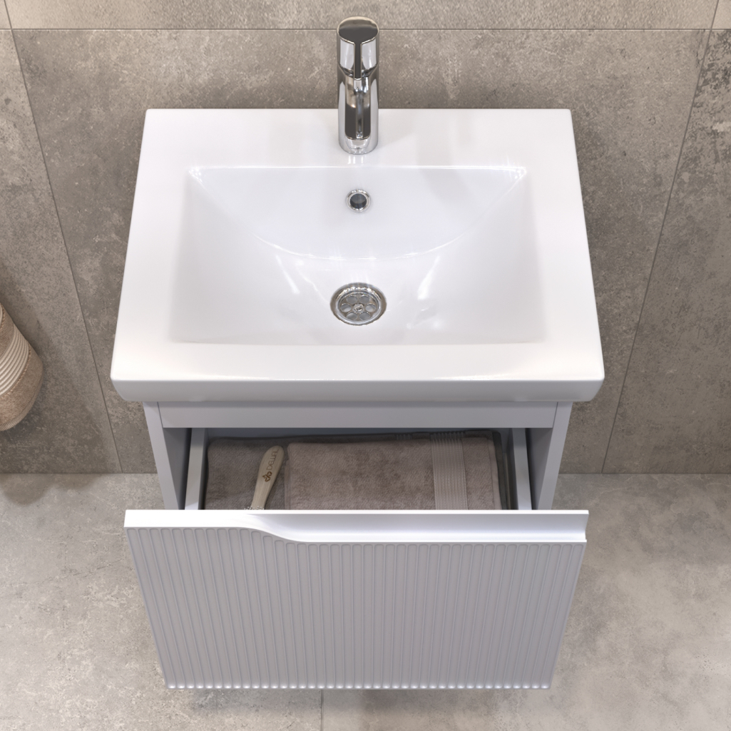 Готовое решение для ванной — комплект, в который входит напольная тумба VIGO из коллекции Neo 500 и встраиваемая раковина Cersanit Como 50. Эти два элемента идеально сочетаются по размеру, стилю и цвету . Вам не придется тратить время на поиск подходящей раковины к тумбе — все уже подобрано.