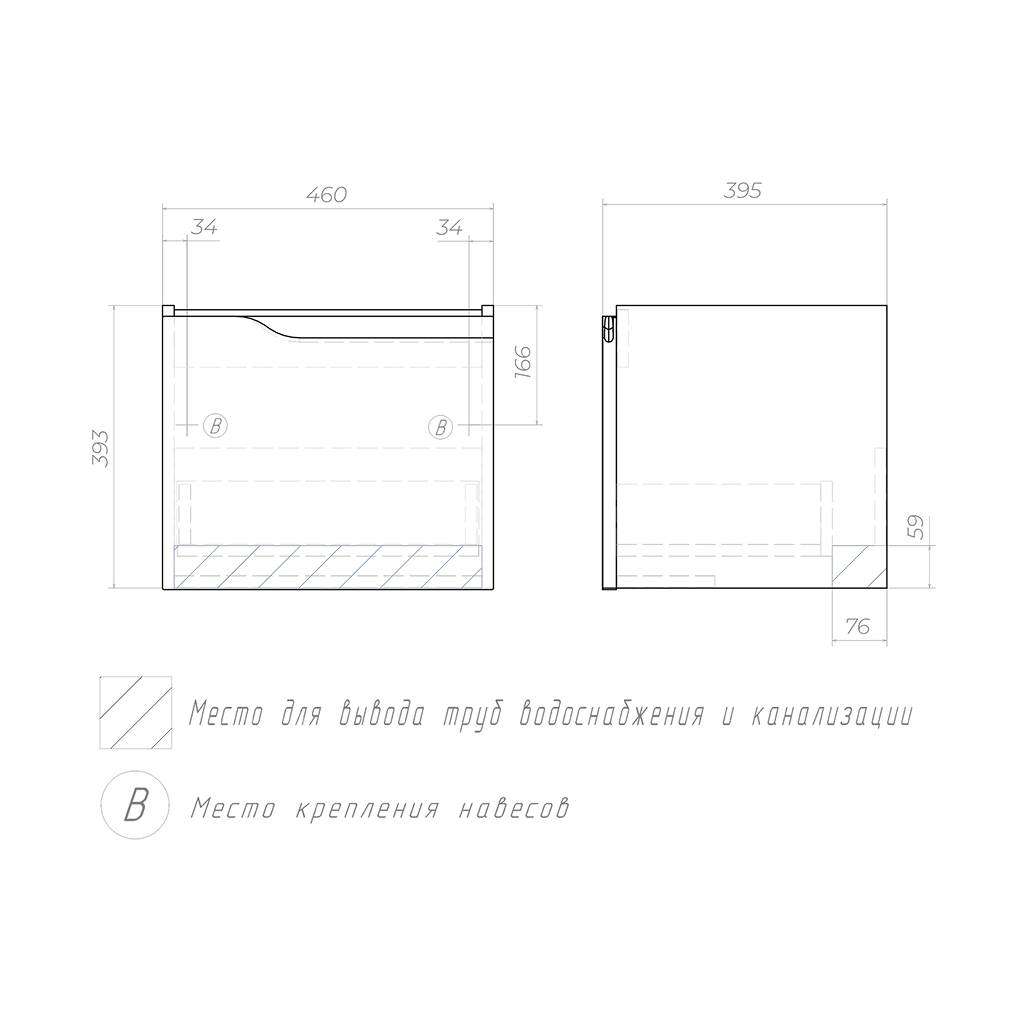 - Просторные ящики: Два вместительных выдвижных ящика позволяют удобно организовать хранение банных принадлежностей, косметики, полотенец и бытовой химии, скрывая их от посторонних глаз