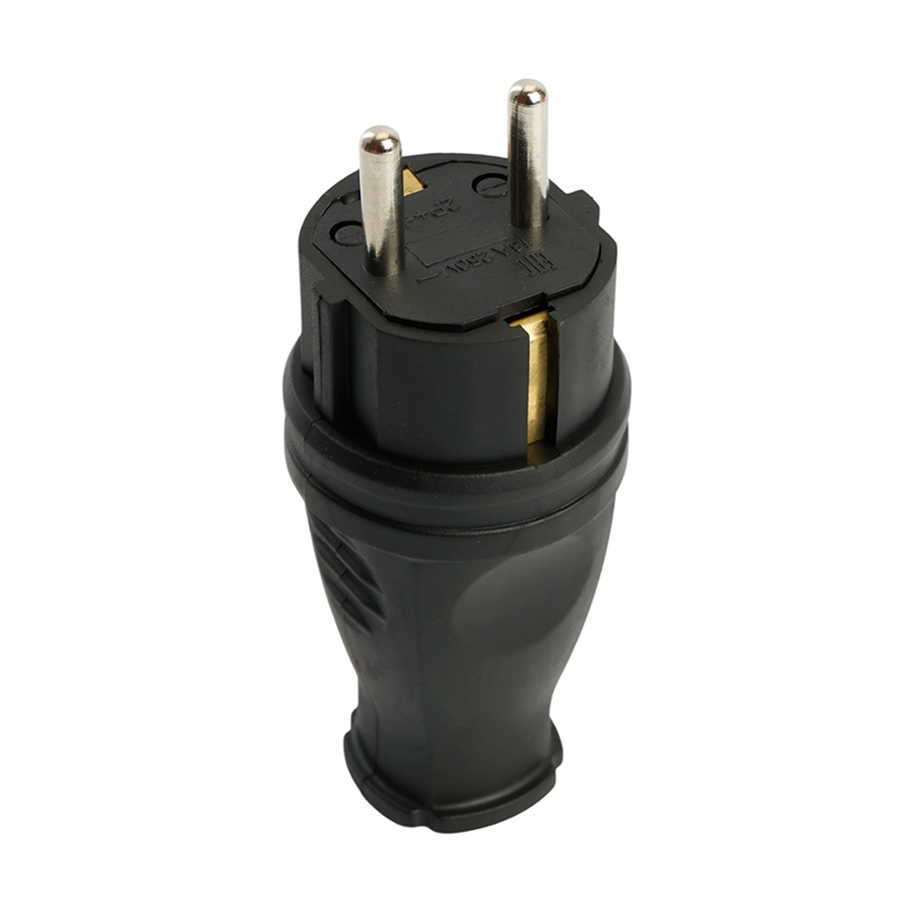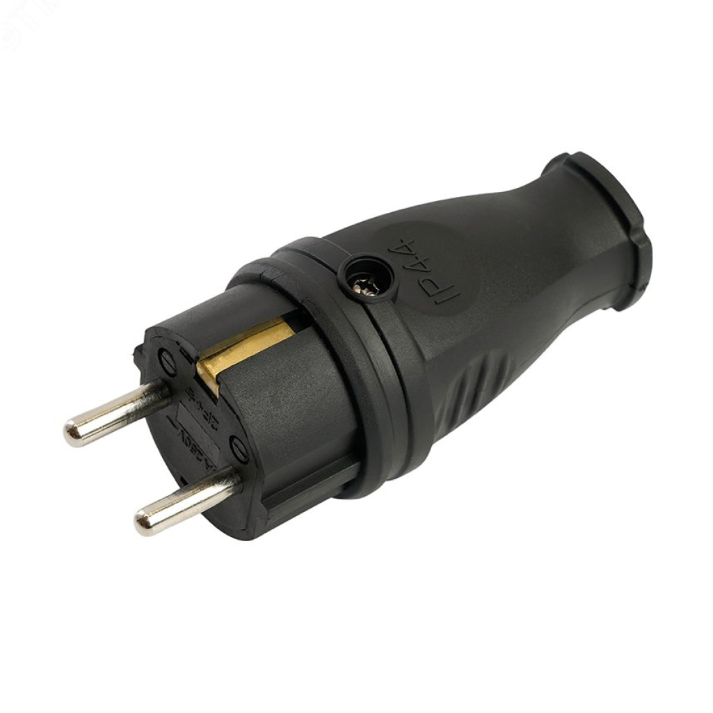 Вилка Stekker прямая 16А 250В с/з каучуковая, черная (RPG16-21-441)