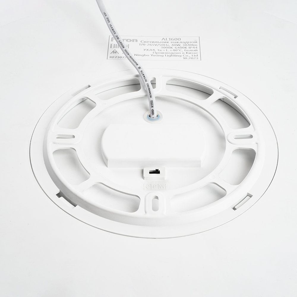 Светодиодный светильник Feron AL1600 — накладная модель мощностью 48 Вт с регулируемой цветовой температурой (3000–6400 K) и матовым рассеивателем. Подходит для основного или дополнительного освещения жилых, офисных и торговых помещений.