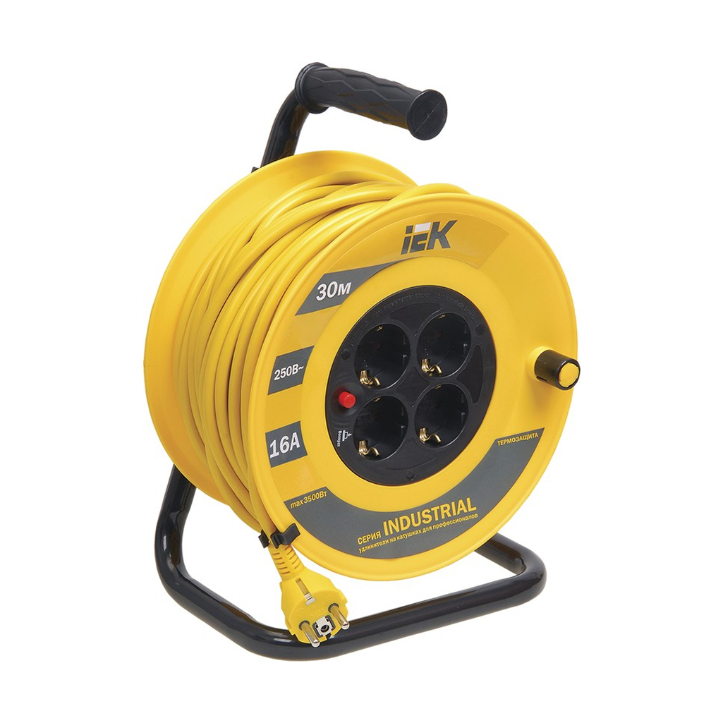 Удлинитель на катушке IEK УК30 4 гнезда 30 м с заземлением, с термозащитой (WKP15-16-04-30)