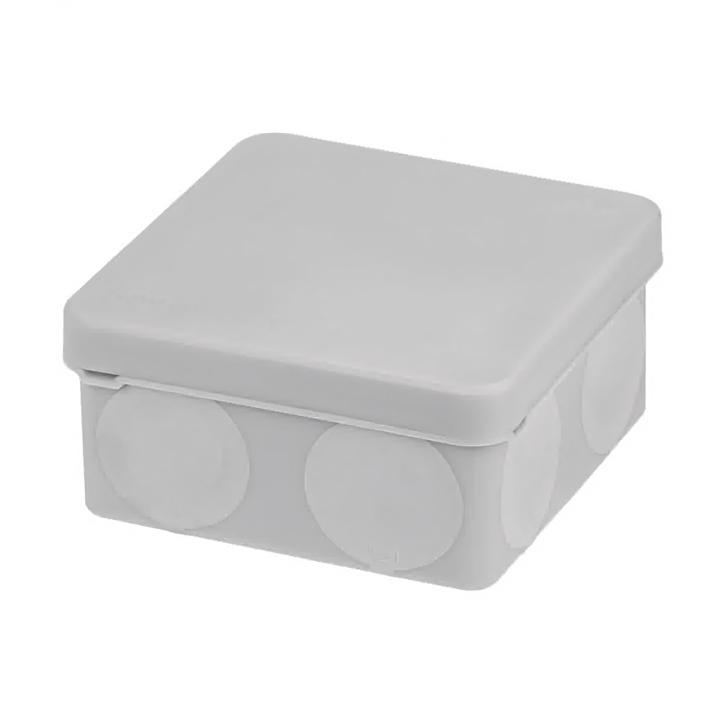 Распаячная коробка, двухкомпонентная, для открытой проводки 80х80х40 мм, степень защиты IP66, 8 вводов, серая. Для разветвления проводов и кабелей. Как часть системы электрической канализации, состоящей из гофрированных и гладких жестких труб. Для защиты от сырости и механических повреждений мест соединения проводов и кабелей.