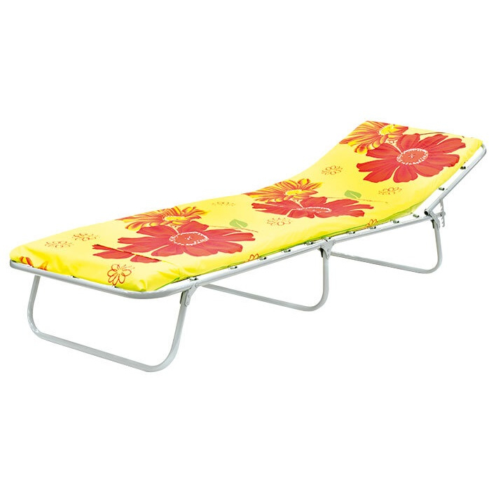 Раскладная кровать на металлокаркасе с подголовником и несъемным матрасом.