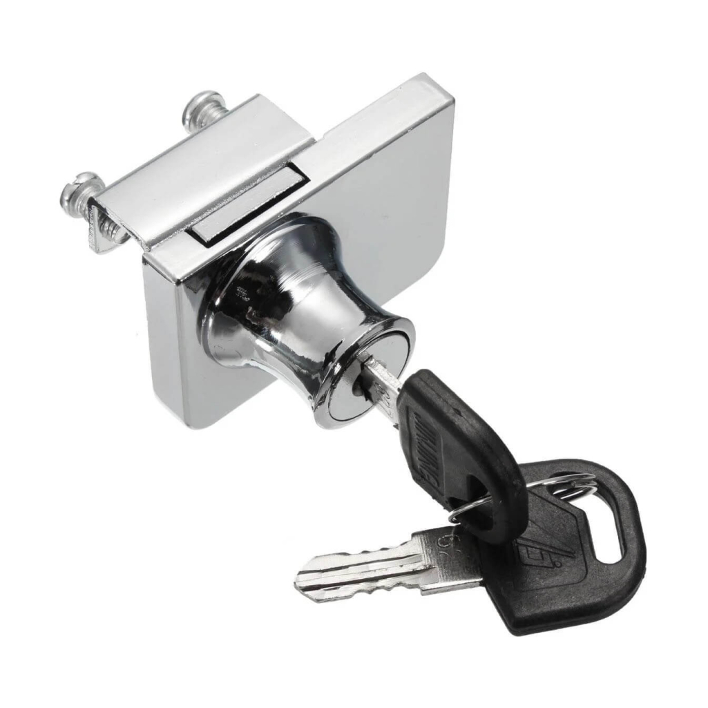 Замок предназначен для запирания стеклянных дверей витрин, шкафов и т.п.Данный замок предназначен для фиксации двух распашных стеклянных дверей. Замок устанавливается без сверления стекла. В комплекте 2 ключа.