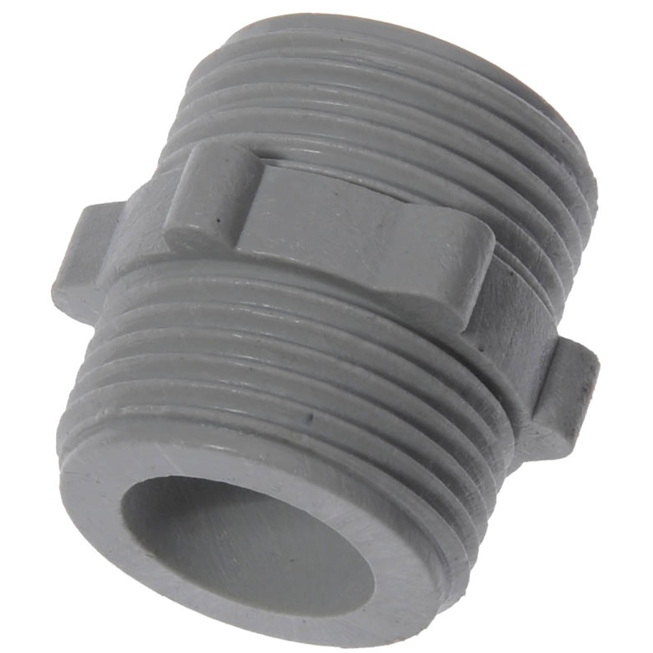 Нипель 3/4" пластмассовый для соединения заливных шлангов стиральных машин.
