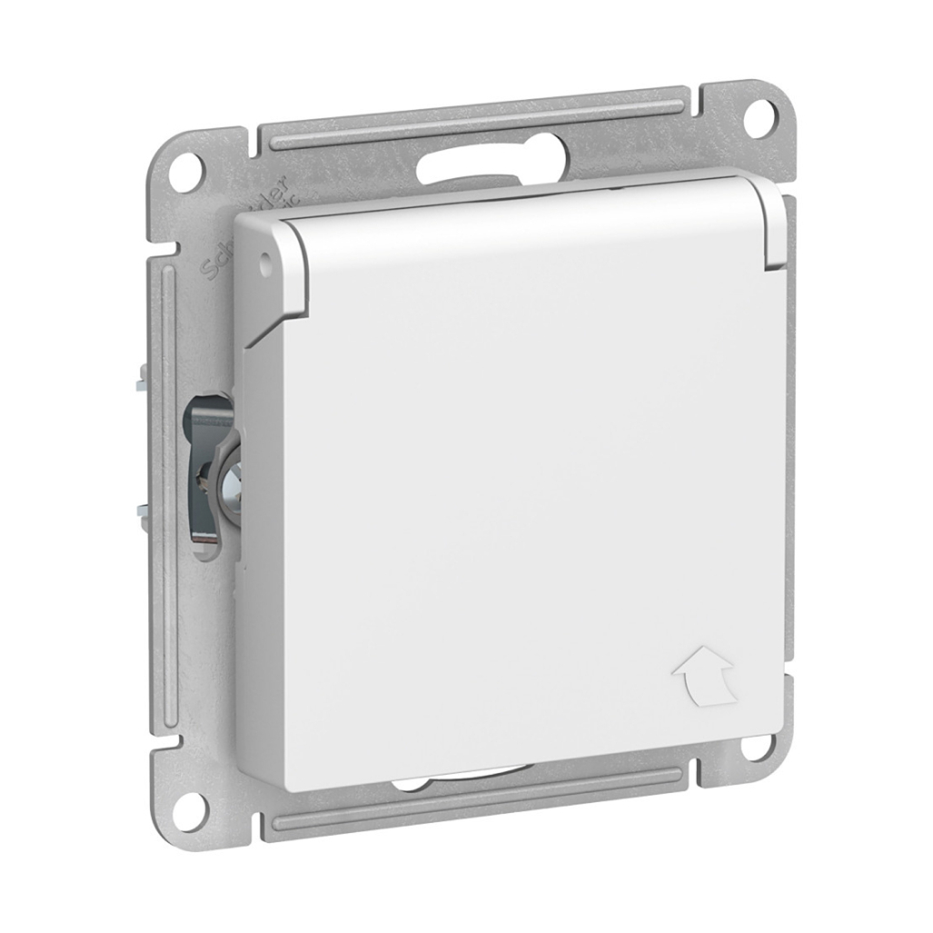 Розетка Schneider Electric AtlasDesign 1-местная с/з скрытой установки без рамки, белая с крышкой (ATN000146)
