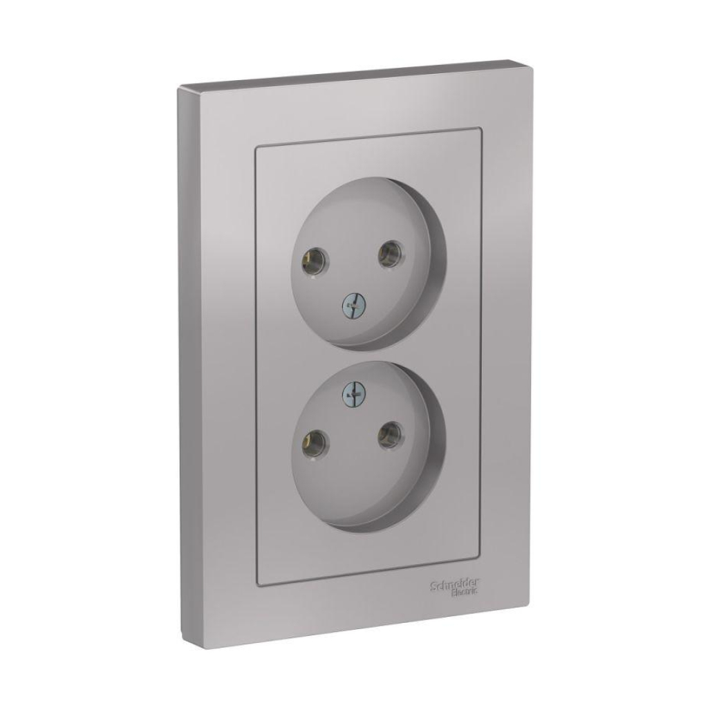Розетка Schneider Electric AtlasDesign 2-местная б/з скрытой установки, алюминий (ATN000320)