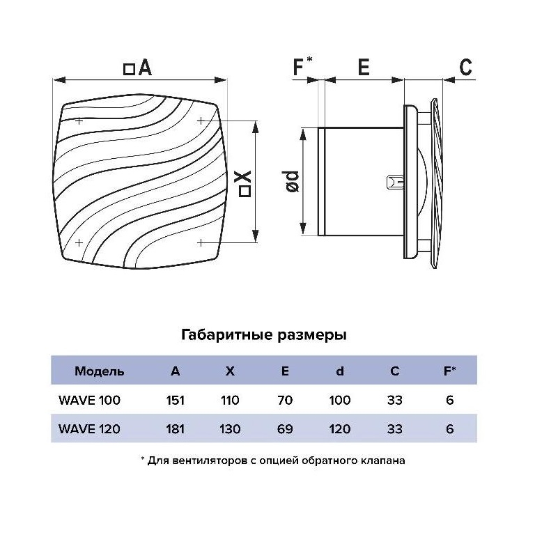 Вентиляторы Wave оснащены монтажными лапками для простого и надежного крепления; легкосъемной закрытой лицевой панелью. Корпус и крыльчатка выполнены из высококачественного и прочного ABS-пластика, который надежно прослужит весь срок использования. Уровень защиты вентилятора – IP24.