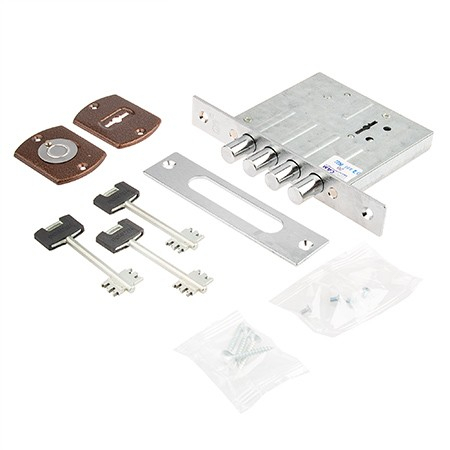 Конструкция замка предусматривает наличие надежных ригелей, защищенных дополнительной системой фиксации. Такой подход обеспечивает высокую степень защиты помещения от несанкционированного проникновения. Механизм запирания обладает плавным ходом благодаря специальным шариковым подшипникам, встроенным в систему подвижных элементов замка.