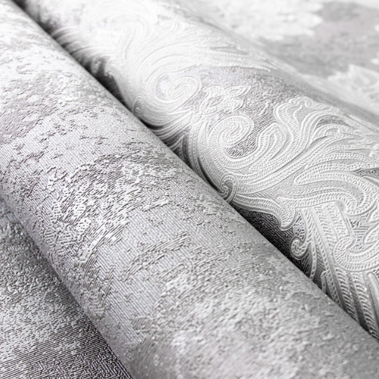 Колористики коллекции включает в себя благородные серые тона. Игра с оттенками и текстурными сочетаниями придают объем и глубину орнаменту. Лёгкий невесомый блеск добавляет шарма и подчеркивает изящность коллекции. Фактура полотна приятна не только зрительно, но и тактильно. Стильные однотонные компаньоны имитируют шероховатую текстуру штукатурки. Такое сочетание изысканного узора и брутальной лаконичности оставляет простор для творческих экспериментов. "Марсель" - прекрасное решение для оформления гостиной, спальни и холла.