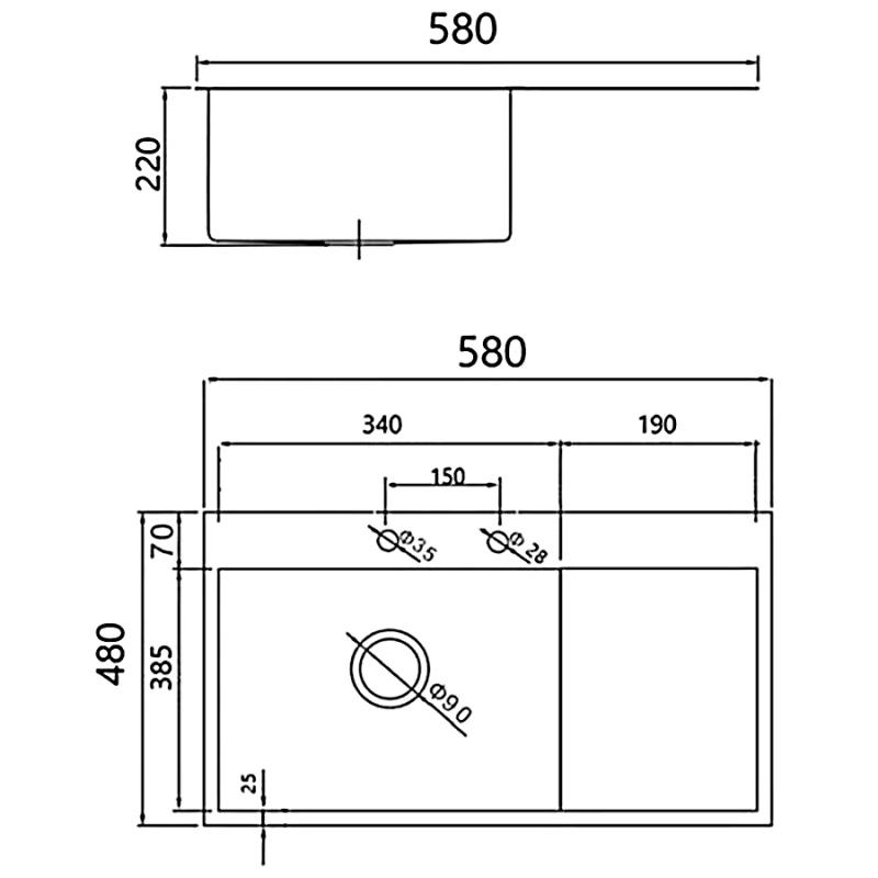 Мойка врезная Gerhans K35848L 580х480х220 мм, толщина 1 мм