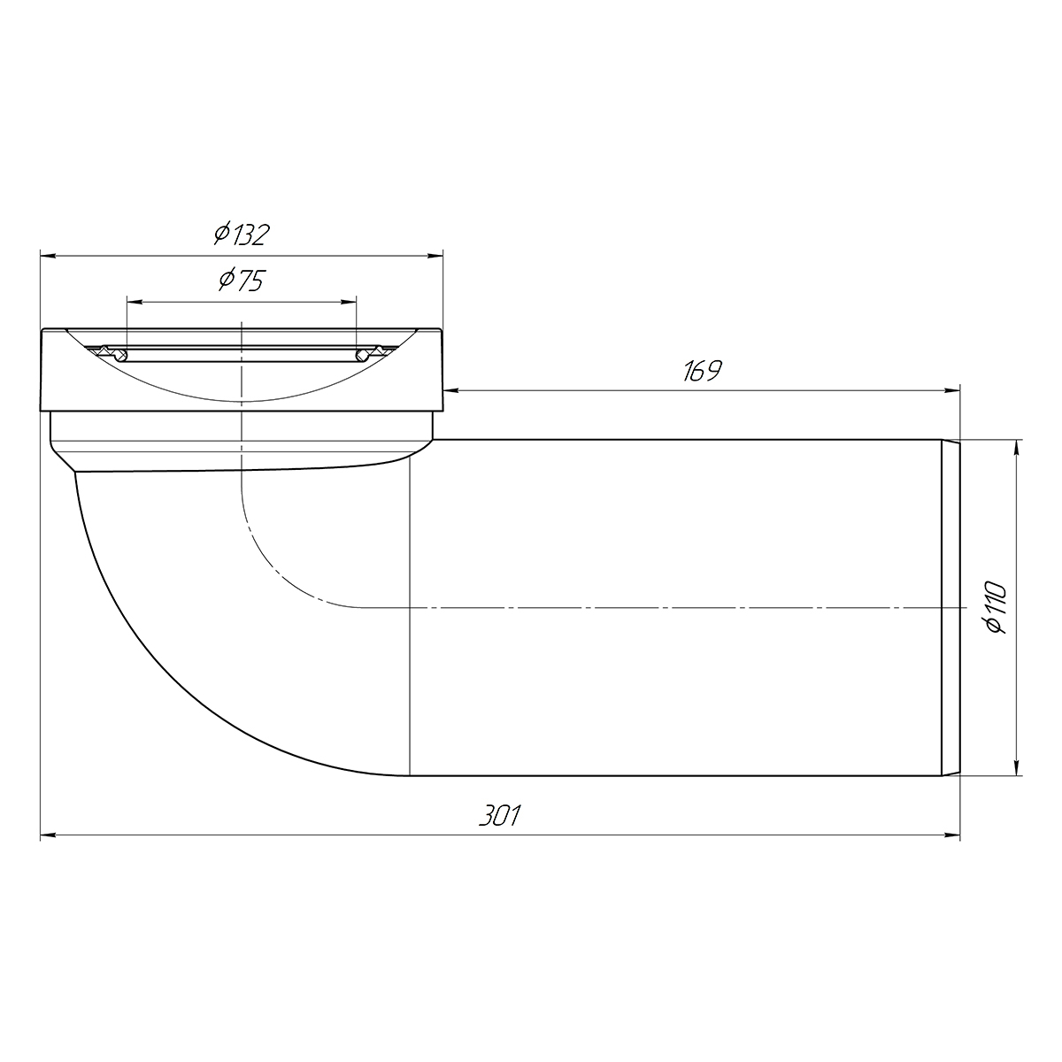 Труба для подключения унитаза к канализации угол 90° диаметр 110 мм. Для пластиковых труб.