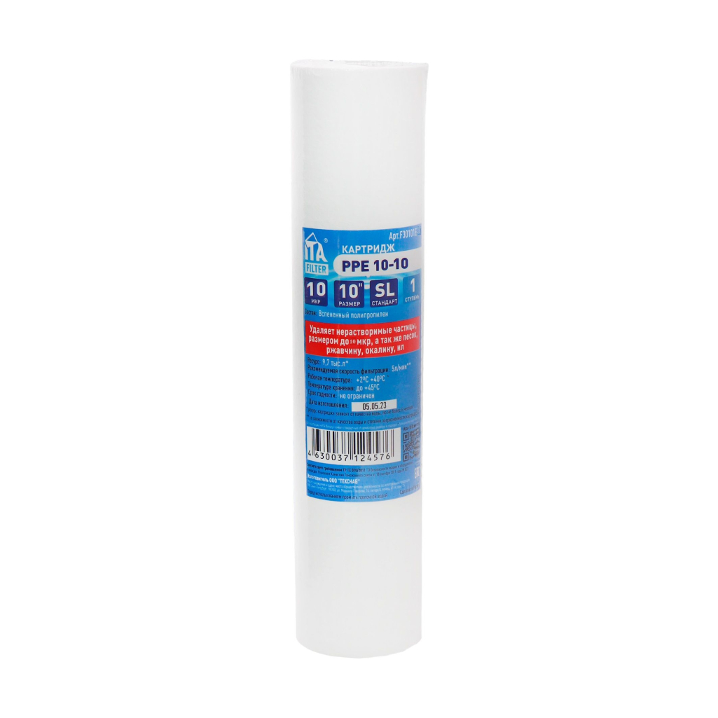 Картридж сменный PP-10-20 эффективно удаляет из воды загрязнения, размером свыше 20 микрон. Готов работать в тяжелых условиях сильно загрязненной воды. Высокая площадь фильтрации в сравнении с вспененным полипропиленом обеспечивает эффективную очистку от ржавчины, песка, взвеси, ила в тяжелых условиях эксплуатации. Материал изготовления: полипропиленовая нить. Используется в проточных фильтрах типоразмера SL 10" и в качестве 1 ступени очистки проточных питьевых фильтров и фильтров обратного осмоса.